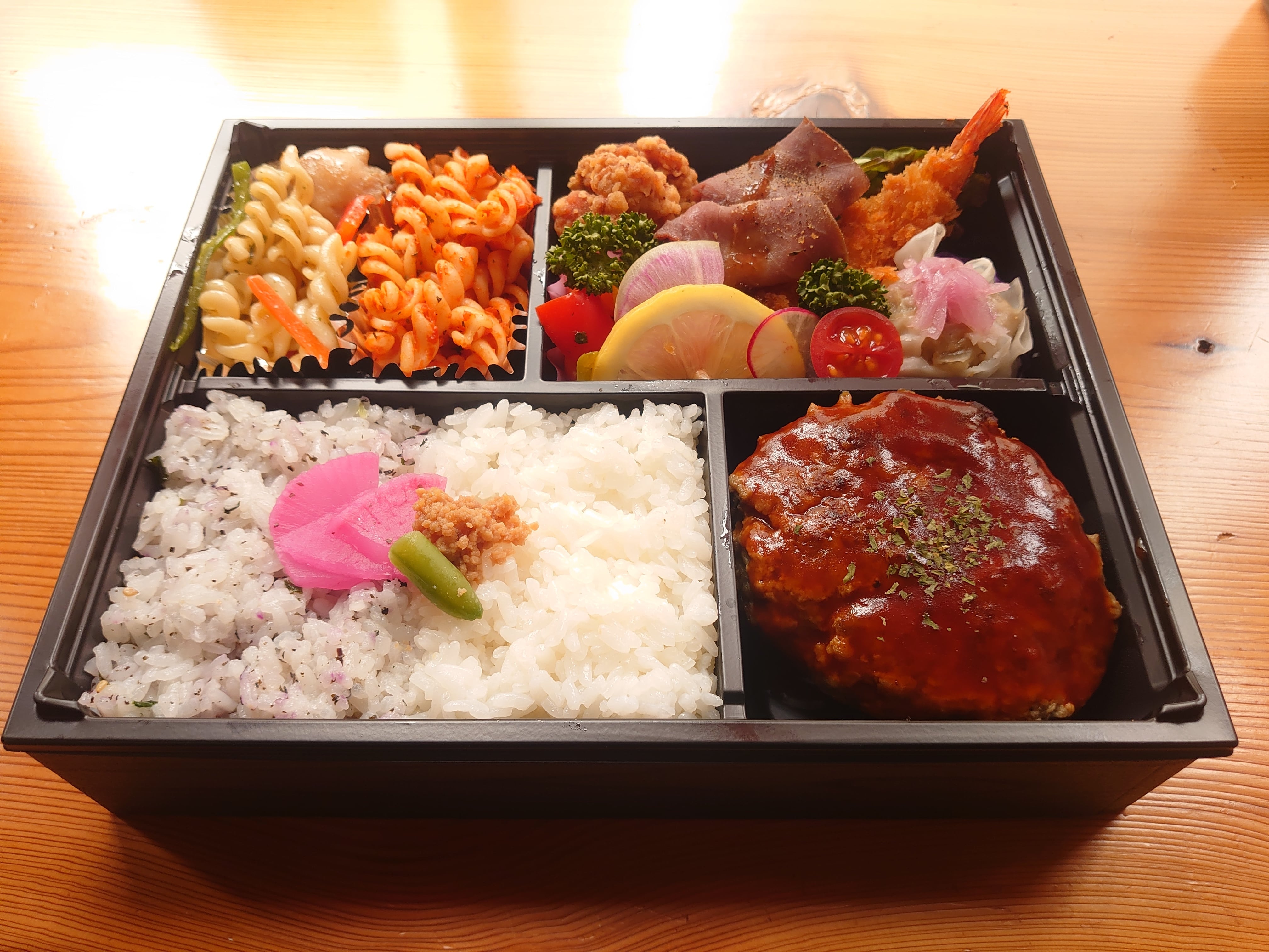 和牛ハンバーグと人気のローストビーフのお弁当です。 副菜も色々入ったボリュームも内容も大満足な洋風弁当。